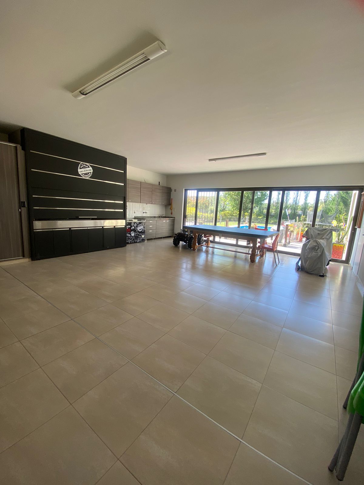 • Garage doble amplio, que se utiliza como quincho con parrilla. Con ventanales al patio.